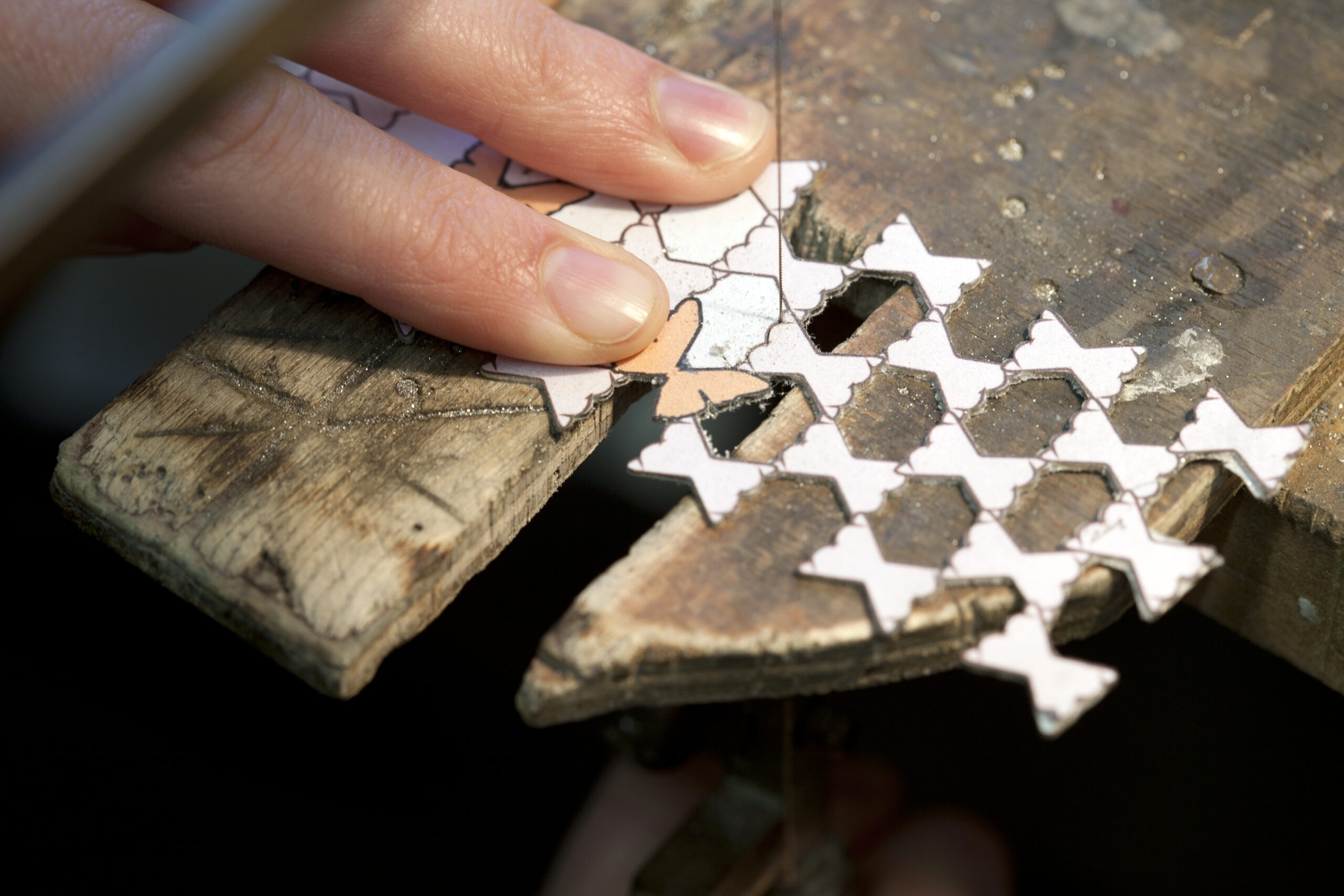 Les manchettes, les bagues et les boucles d’oreilles sont réalisées en argent 925. Une des bagues est réalisée en argent et en or 24 carats, en employant la technique de Keum-boo (ancienne technique de dorure coréenne utilisée pour appliquer de fines feuilles d’or sur de l’argent). Une des manchettes comprend un papillon en or.
